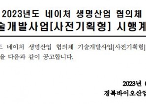 2023년도 네이처 생명산업 협의체 기술개발사업(사전기획형) 시행계획